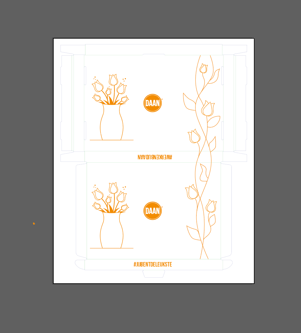 Een van de bijzondere opdrachten tijdens mijn stage bij Daan was het ontwerp van de verpakking voor de tulpendoos. Het ontwerp was gericht op eenvoud en moest de herkenbaarheid van het merk benadrukken. De opdracht was om een simpele illustratie van een tulp te creëren, die op een subtiele en visuele manier het product representeerde.