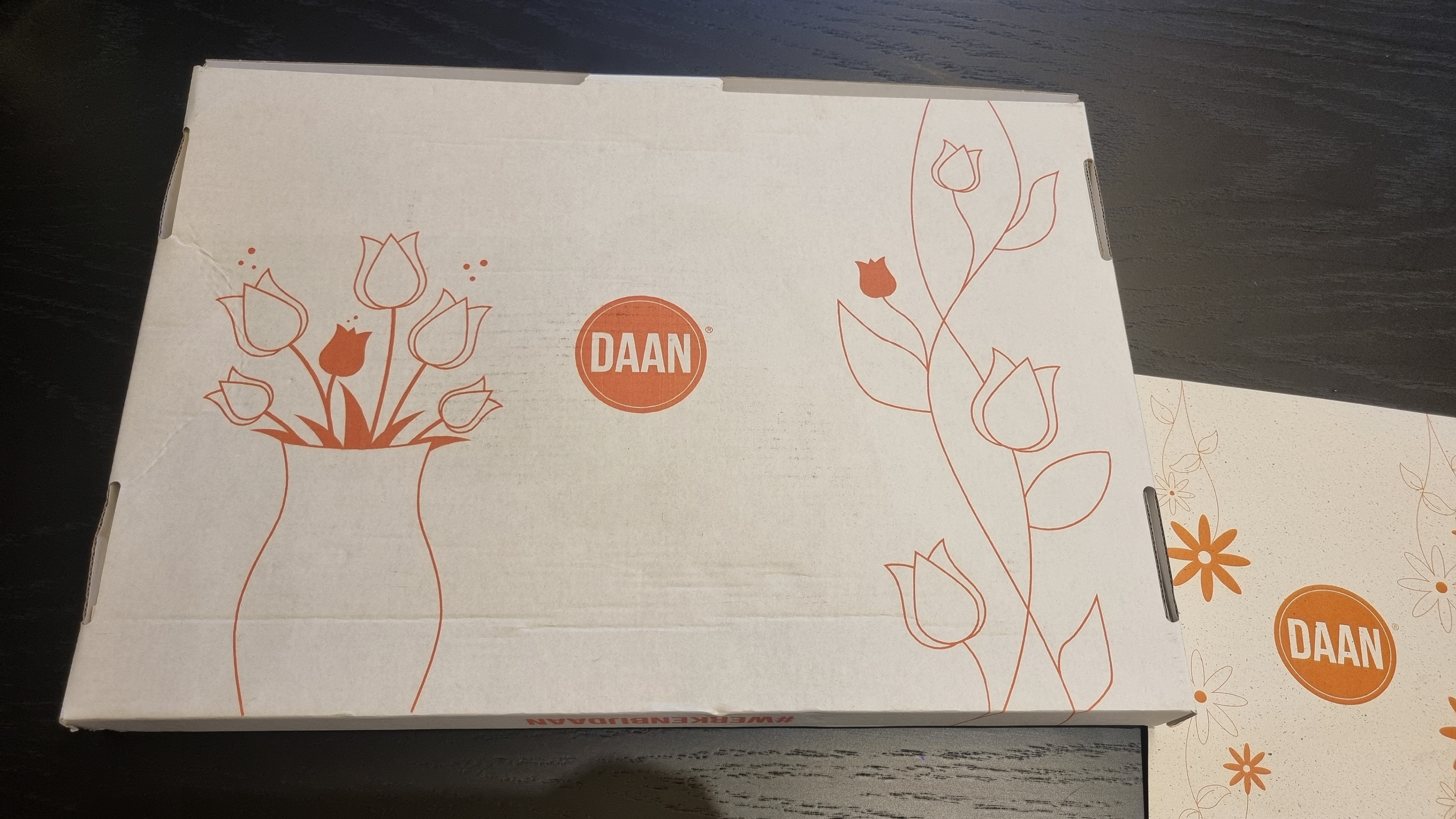 De achtergrond van de doos moest wit blijven, wat de uitstraling minimalistisch en clean maakte. Daarnaast mocht ik alleen oranje gebruiken, wat de associatie met Daan en het merk versterkte, gezien de kenmerkende kleur in de huisstijl. Het was belangrijk om met deze beperking een krachtig, maar toch eenvoudig ontwerp te maken.